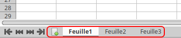 Un fichier contient différentes feuilles de calculs, indiquées en bas à droite :